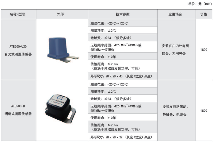 ARTM-Pn無線測溫裝置:ARTM-Pn無線測溫裝置可以單獨安裝在高壓柜、低壓抽屜柜內,每臺裝置可以接收18個傳感器的數據,傳感器型號可選配ATE100、ATE200、ATE300。裝置帶有一路485接口,可將采集到的溫度數據上傳到監控中心。