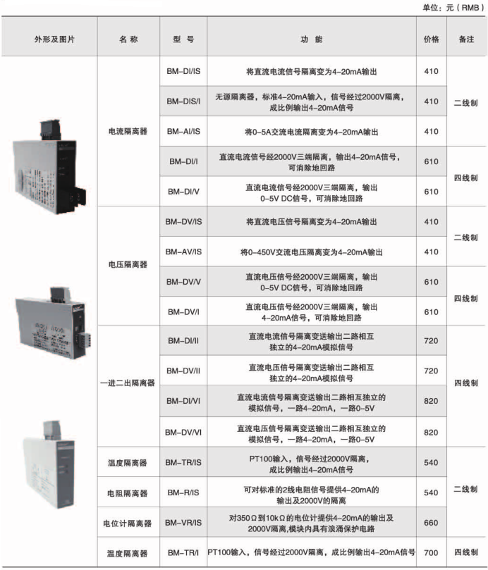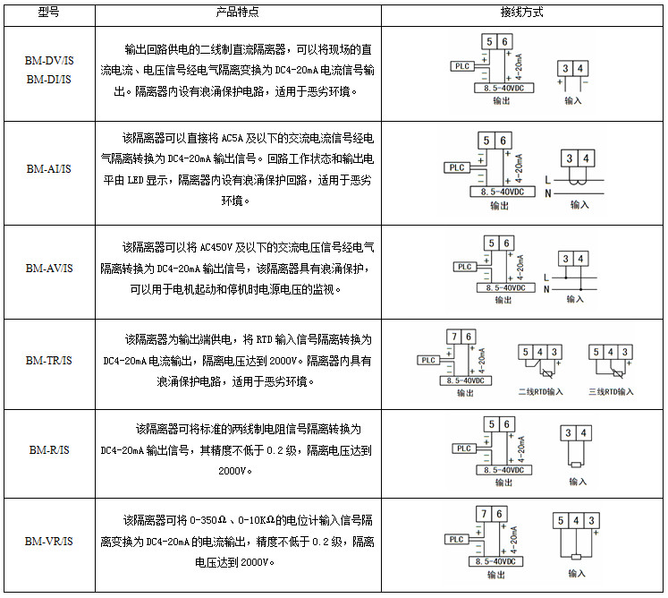 BM系列模擬信號隔離器可以對電流、電壓等電量參數(shù)或溫度、電阻等非電量參數(shù)進行高速測量,經(jīng)隔離轉(zhuǎn)換成標準的模擬信號輸出。既可直接與指針表、數(shù)顯表相接,也可以與自控儀表(如PLC)、各種A/D轉(zhuǎn)換器以及計算機系統(tǒng)配接。