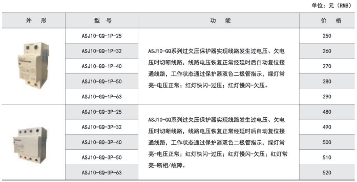 ASJ10-GQ系列自復式過欠壓保護器