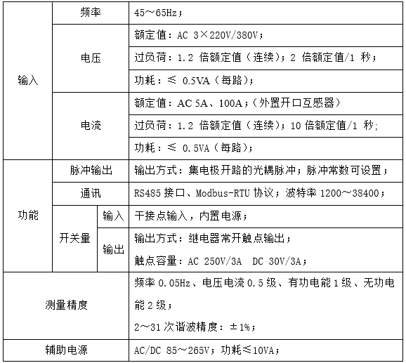 模塊技術參數: