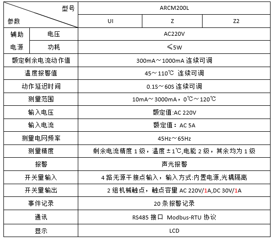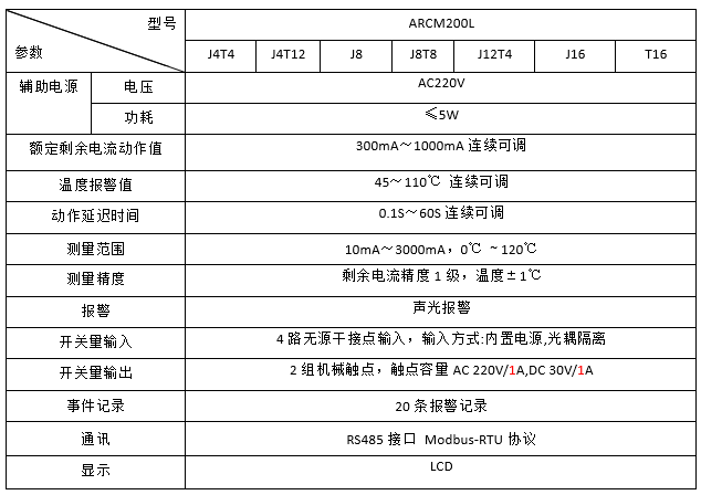 8路剩余電流監測電氣火災監控裝置ARCM200L-J8:8路剩余電流監測,2路繼電器輸出,4路開關量輸入,事件記錄,1路RS485通訊
