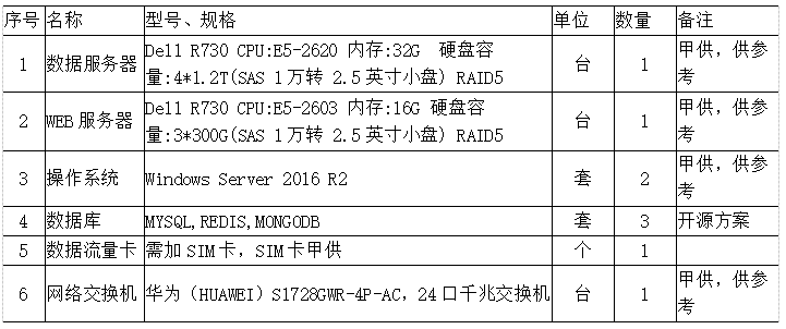 5.3.2 系統現場硬件配置清單: