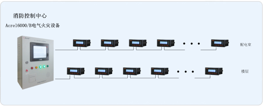 該項目監控范圍為平頂山市人民醫院樓層配電箱內的68只ARCM200系列儀表,監控裝置主要負責監控現場分布于配電箱中低壓出線的漏電狀況,及時提醒消控室值班人員,以防止電氣火災的發生。現場儀表以手拉手的方式并通過現場總線接入Acrel-6000/B后臺,組成電氣火災系統的大動脈,以確保醫院配電系統的電氣安全。