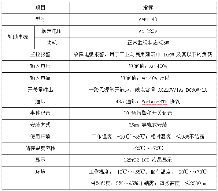 4.2.3 AAFD-40型電弧故障保護電器主要功能如下