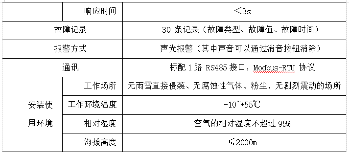 ■ 表內超溫保護功能。當保護器內部器件工作溫度過高時,保護器實施超溫限流保護,并發出聲光報警信號。