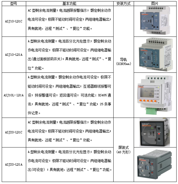 注:①ASJ10L- LD1A額定剩余動作電流IΔn為10mA-30A連續可調;