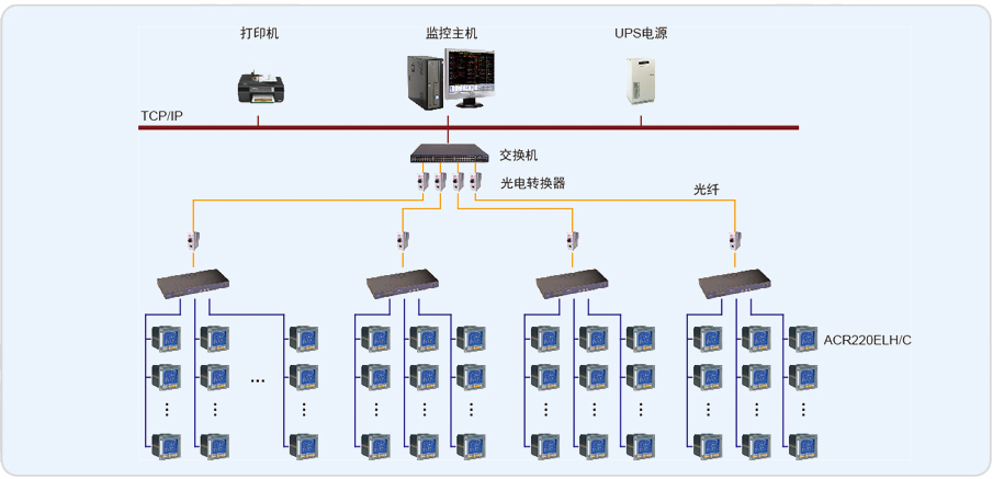 高壓配電間內我司智能儀表ACR220EL共28臺,采用1根屏蔽雙絞線連接至通訊管理機,進行數據的集中采集;2車間及3車間內我司智能儀表ACR220EL共11臺,采用1根屏蔽雙絞線連接至通訊管理機;1車間內我司智能儀表ACR220EL共5臺,采用1根屏蔽雙絞線連接至通訊管理機,進行數據的集中采集;4車間內我司智能儀表ACR220EL共3臺,采用1根屏蔽雙絞線連接至通訊管理機,進行數據的集中采集;通訊線纜均采取屏蔽線接地,防止強電信號干擾,末端加裝120歐電阻,增強線路信號,保障了數據傳輸的實時性。