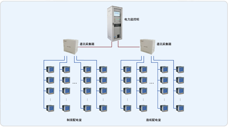 淄博歐木特種紙業有限公司是山東齊峰特種紙業股份有限公司的全資子公司。2003年企業被國家科技部命名為國家新材料產業化基地骨干企業,2004 年進入全國私營企業納稅百強排行榜,公司擁有山東省企業技術開發中心、山東省高檔裝飾原紙工程技術中心和院士工作站,由中國造紙院士陳克復教授擔任專家。歐木特種紙業二期電能管理系統現場為新建的15#車間,2個低壓配電室:制漿配電室和造紙配電室,配電室內采用安科瑞ACR系列電能管理儀表采集各回路的電流、電壓、電能等電參量,然后通過中間層采集設備經局域網傳到監控室計算機上,實現遙測、遙信功能。