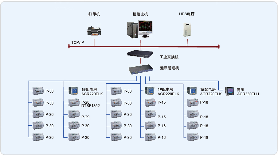 主動調制就是基于Acrel-2000電力監控軟件和ADL3000、ACR330ELH、ACR320EL網絡電力儀表的監測系統。在配電柜、出線柜、計量柜加裝上述智能儀表。然后采用分層分布式計算機通訊網絡構建系統。被動調制主要是通過分時用電和浮動用電成本的途徑來調節用電。采用Acrel-2000電力監控系統實現了一套分散式采集和集中控制管理,從系統的實時數據和歷史數據出發,從而能在用電高峰期優化生產。該方案提高了供電質量和管理水平,具有簡明實用、投資少優點。