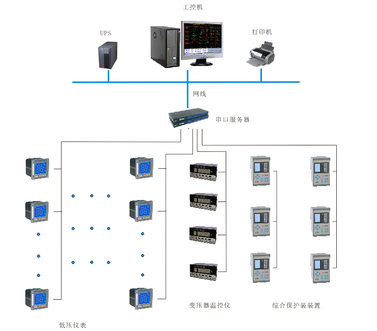 站控管理層針對電力監控系統的管理人員,是人機交互的直接窗口。在主要指置于值班室的工控機、顯示器、UPS等。