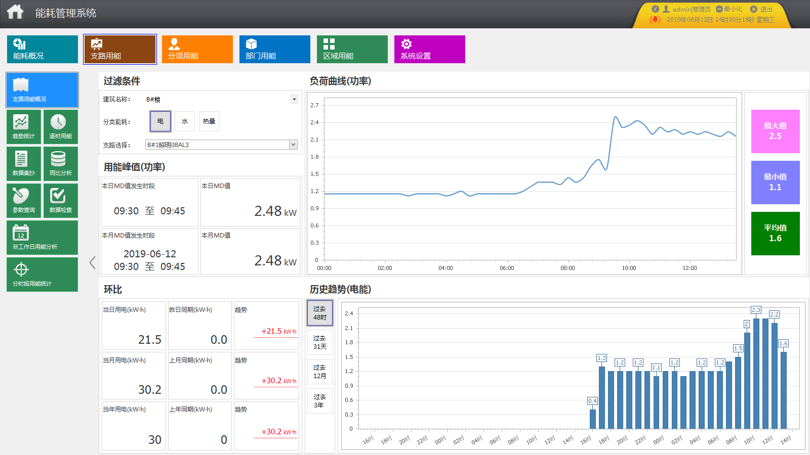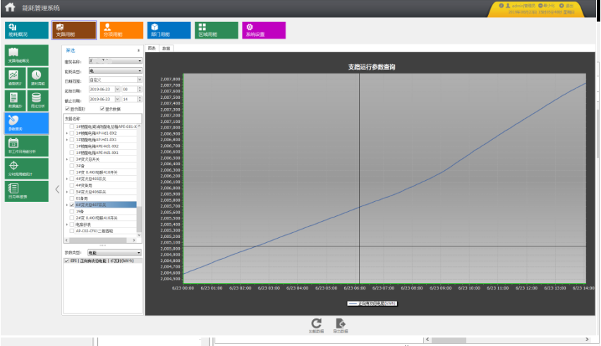 統計各配電回路某段時間內逐日、逐周、逐月、逐季、逐年用能。分類能耗支路分時段用能趨勢分析。