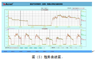 負荷趨勢曲線界面中可直觀的查看回路的負荷運行情況。查看實時和歷史趨勢曲線,點擊畫面相應按鈕或菜單項可以完成相應功能的切換;幫助用戶進線趨勢分析和故障追憶,具備曲線打印功能。為分析整個系統的運行狀況提供了直觀而方便的軟件支持。見圖(5)。