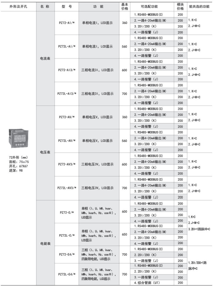具體型號:PZ72-E4/C| 技術(shù)參數(shù) | 指 標(biāo) | |