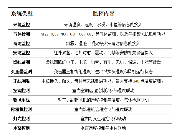 由于硬件資源以及系統軟件上的差別,Acrel-2000E/A作為針對變電所配電室的環境輔助監控系統,只對環境參量設備進行在線監測;而Acrel-2000E/B與Acrel-2000E/G作為硬件資源豐富,系統功能更為強大的設備,可以配合我司無線測溫以及電力儀表進型在線監測。